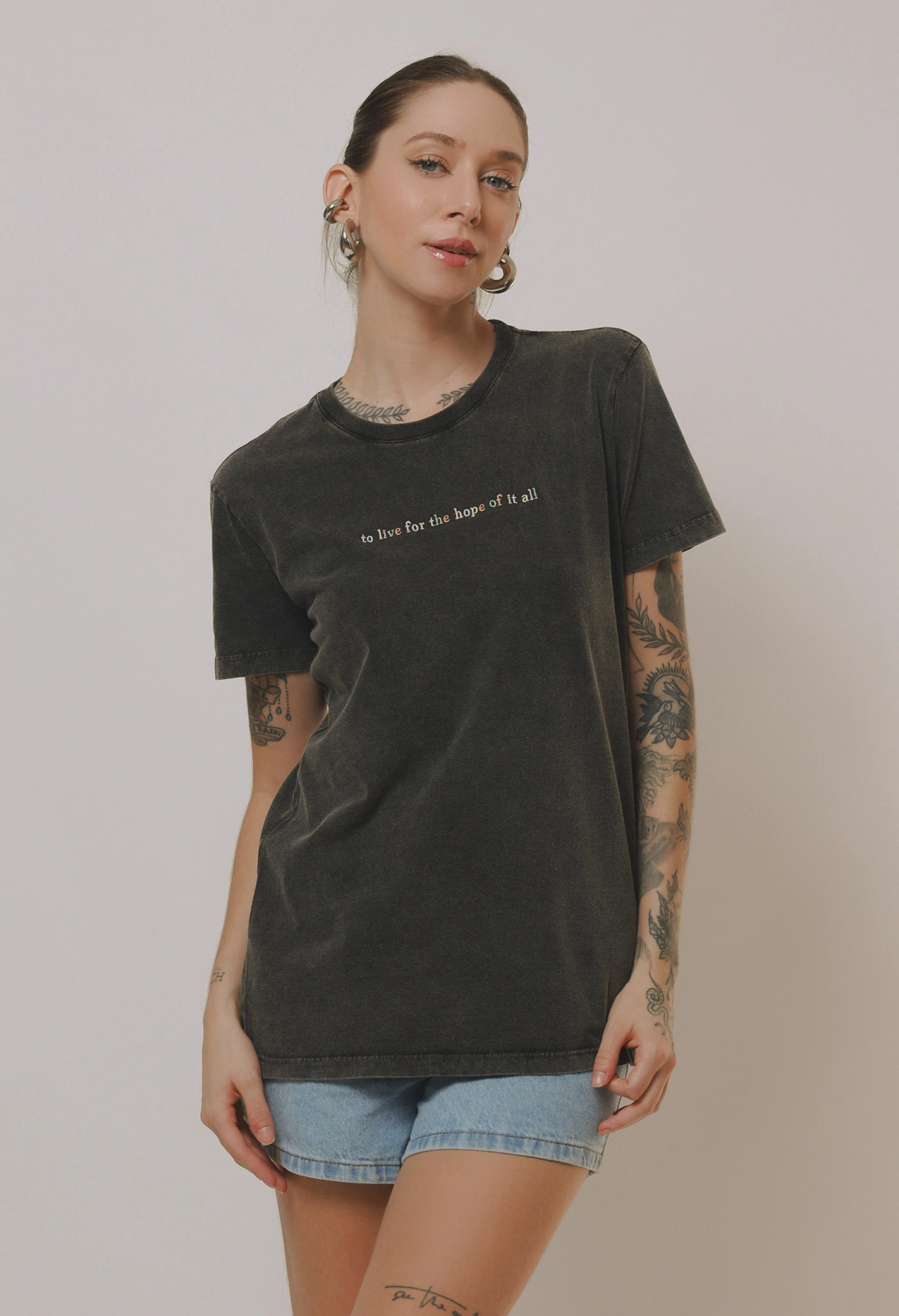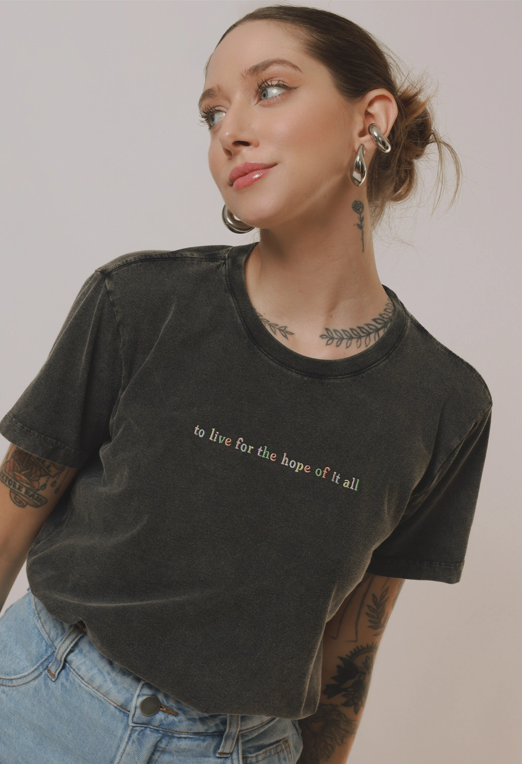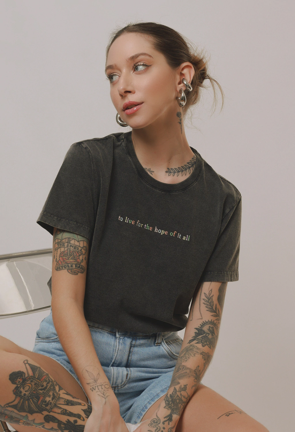 Nossas camisetas são feitas com malha premium 100% algodão sustentável BCI, passando por um processo de lavanderia que evita torções e encolhimento. Isso significa que sua camiseta vai continuar incrível mesmo depois de muitas lavagens!